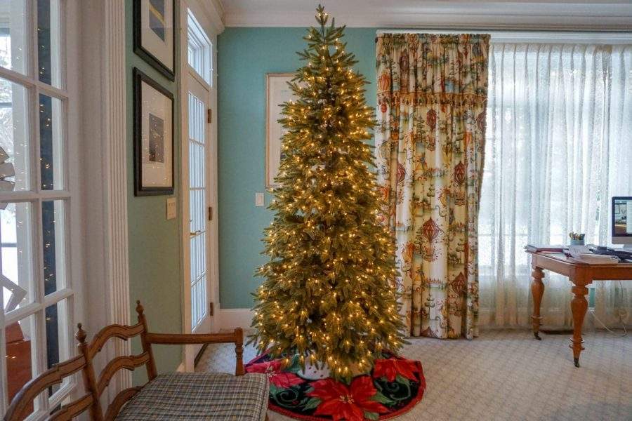 So, one thing at a time: trees are up, no skirts and no ornaments. These five trees here are brilliant, we used to do the fresh thing where husband and the kids would go out and get the biggest fresh thing they could find and then I would spend DAYS and NIGHTS wrestling with the lights, solo, of course. No more, last year on advice from my sister, she who designs events for hundreds of thousands in San Francisco, ordered in from Balsam Hill: I bought three of their revolutionary flip trees, and the two slender ones in the dining room go up in minutes, all lit! It’s genius.
