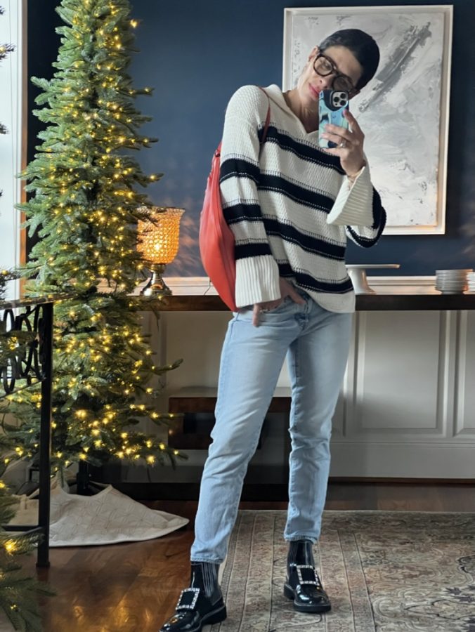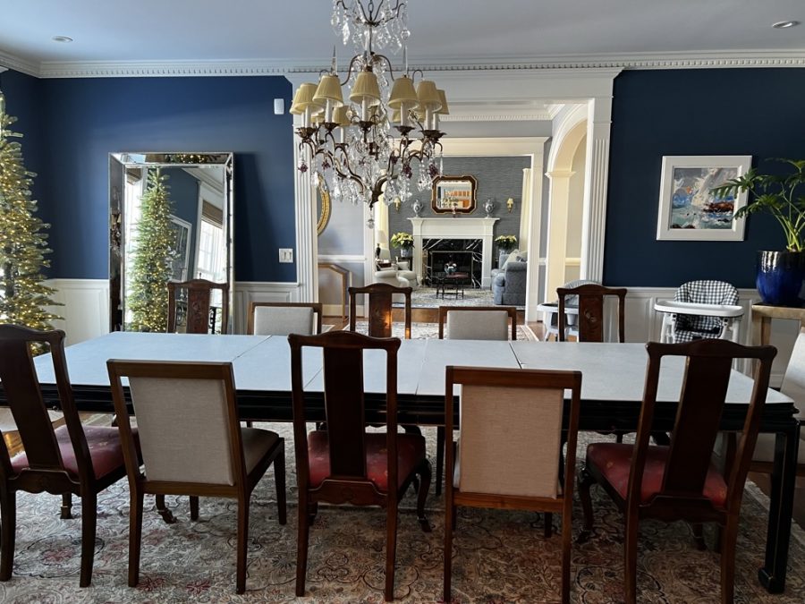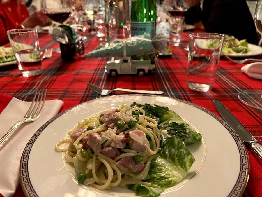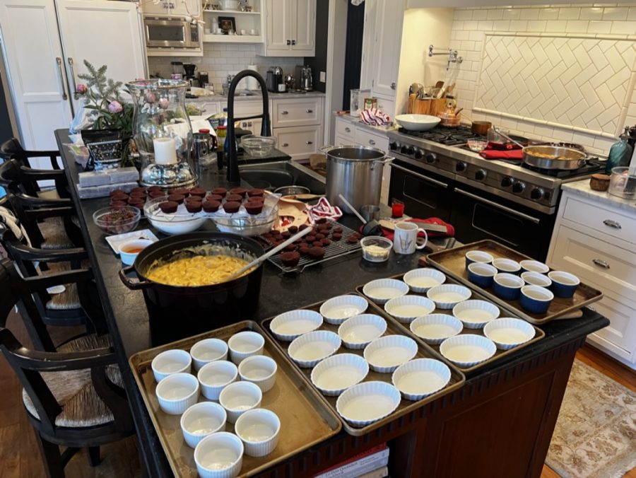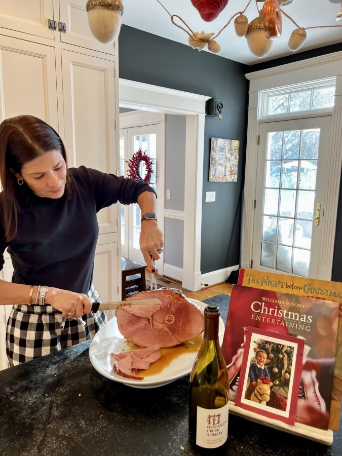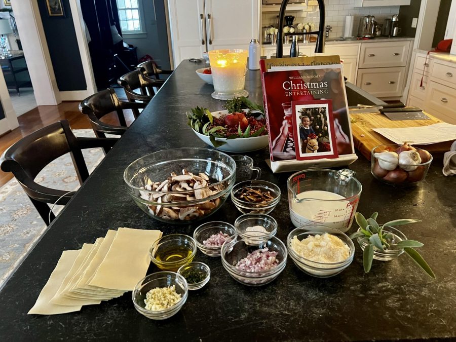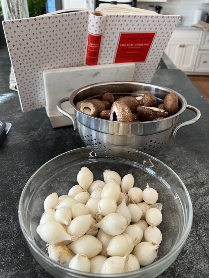Sunday evening, I served a delicious Boeuf Bourguignon for fourteen, intertwining an evergreen garland down the length of the table and peppering it with clementines. The silver candlesticks were hauled up from my office and given a quick shine before filling them with used tapers. The silver sequin tablecloth was purchased on Amazon for $50 and added instant bling, and beef stew with red wine sauce spills can do no harm. A quick turn in the laundry machine on cold, hang to dry, and good to go for the next fete. The dry cleaning turnaround time for the formal white linen slows me down.