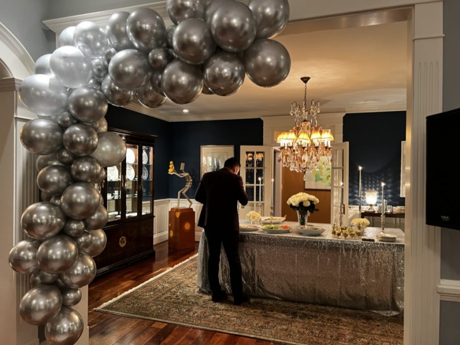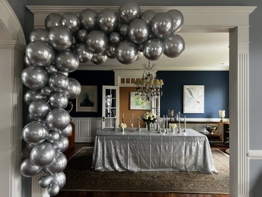 We celebrated Booie’s 30th birthday on Saturday with cocktails, food, a rousing game of Trivia, and a decadent Red Velvet Cake. I brought the silver sequins back for round two, adding a pair of fun Bistro tables. Lindsey made a festive balloon garland like the icing on a good cake, and we all partied the night away.