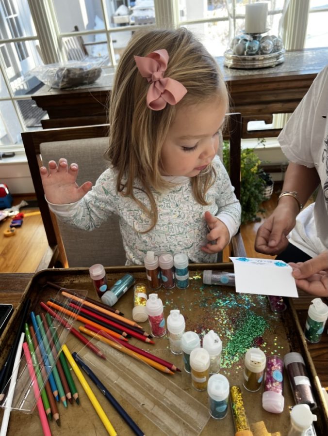 The white linen came out for giving thanks on Thursday, and the evergreen garland went back outdoors, waiting to be hung by the family entry. Peyton and Booie made the most adorable place cards, generously glittering BOTH sides.