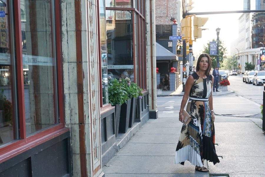 Last week husband took us all downtown for spontaneous dinner outdoors. Thank goodness for the rolling rack of dresses in the guest room where we all kind of dump our stuff, the three of us got dressed fast, as dressing for dinner is a thing.