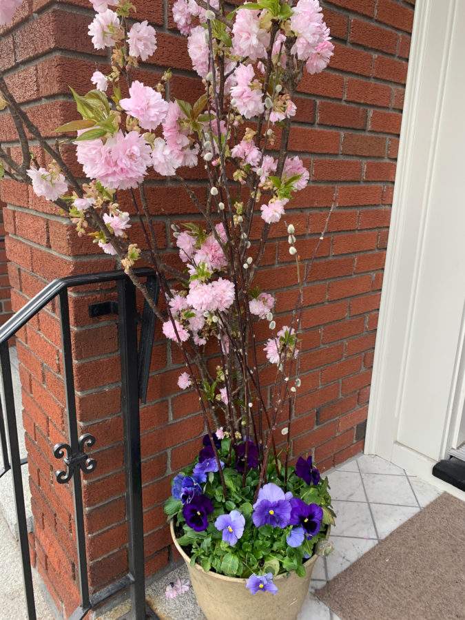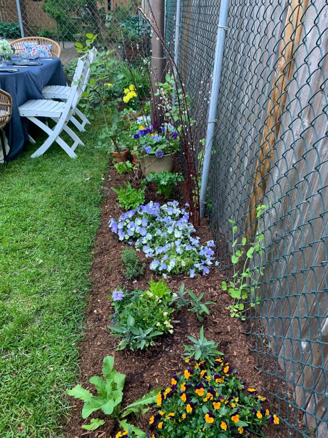 The blue pansies I brought with me from Buffalo, the rest of the plants I had delivered, or I bought them from a nursery in Watertown, that was my big outing for the week, and I went twice.