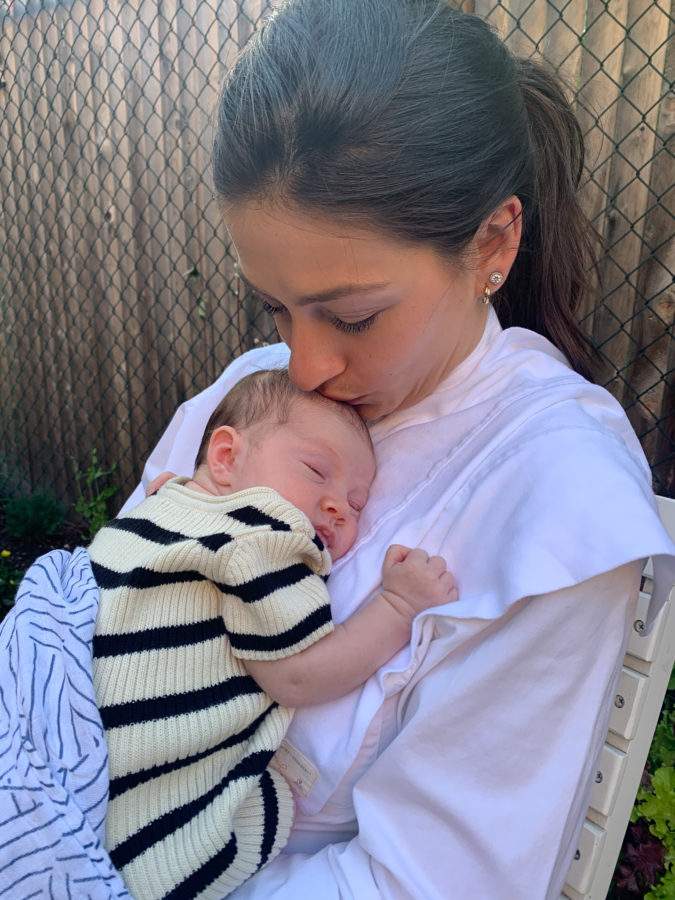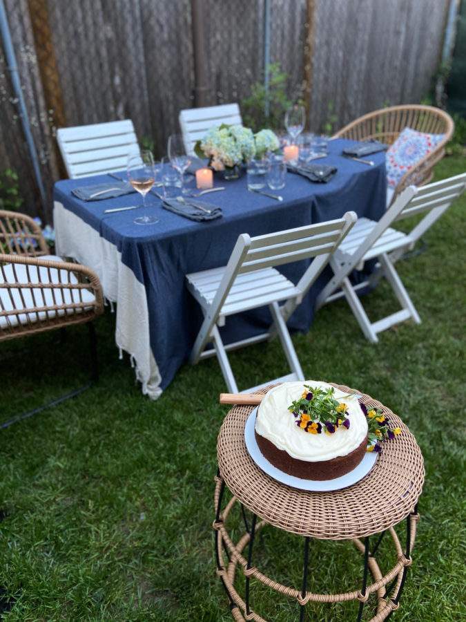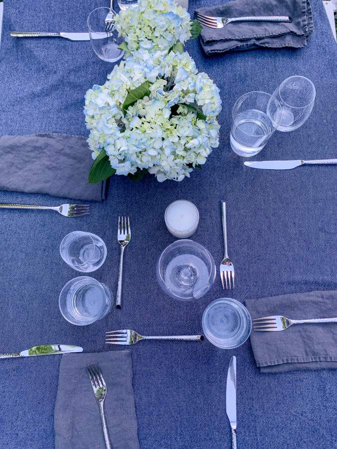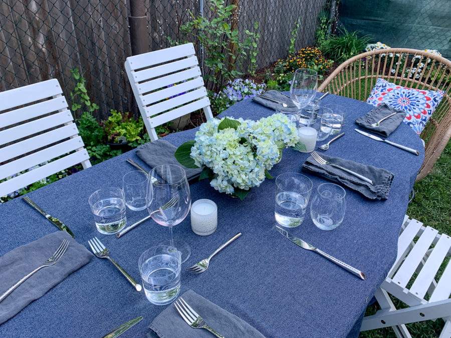On our last evening we had their first garden setting dinner. It was small and intimate; we placed a borrowed card table next to their little white table and covered them both with a navy cloth they bought while in St. Tropez last year at this very same time. Our outdoor dinner marked so many things, a new baby, a new season, a first try at a new garden. All will be ever evolving, and peace will be found in that small sweet space.