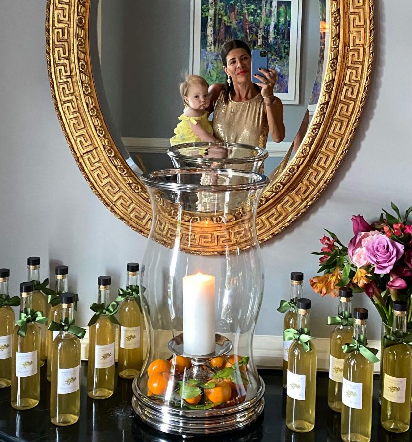 In keeping with our Italian Tuscan Countryside Dinner theme, Alexis made batches of scratch Limoncello and bottled it up for take home favors, personalized with custom stickers and tied with festive ribbon.