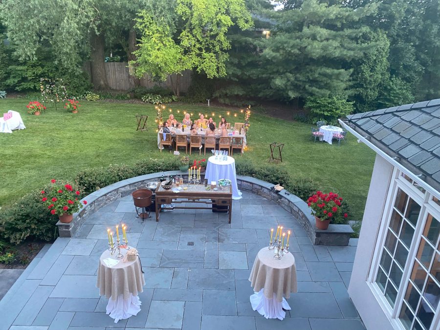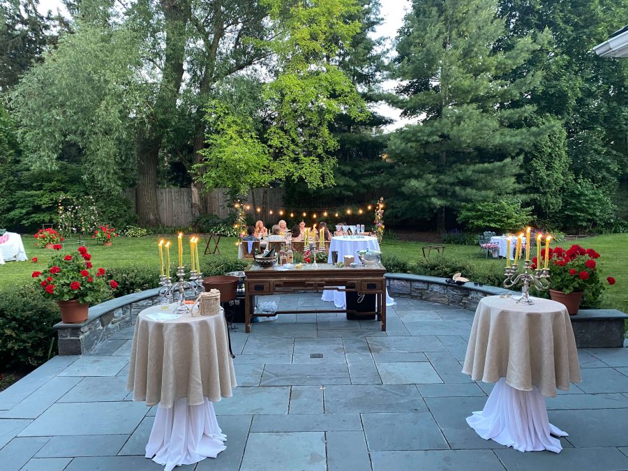 Several weeks ago, we showered my oldest daughter’s best friend bride-to-be Stephanie with a lovely cocktail hour and sit-down dinner in our city garden back yard.