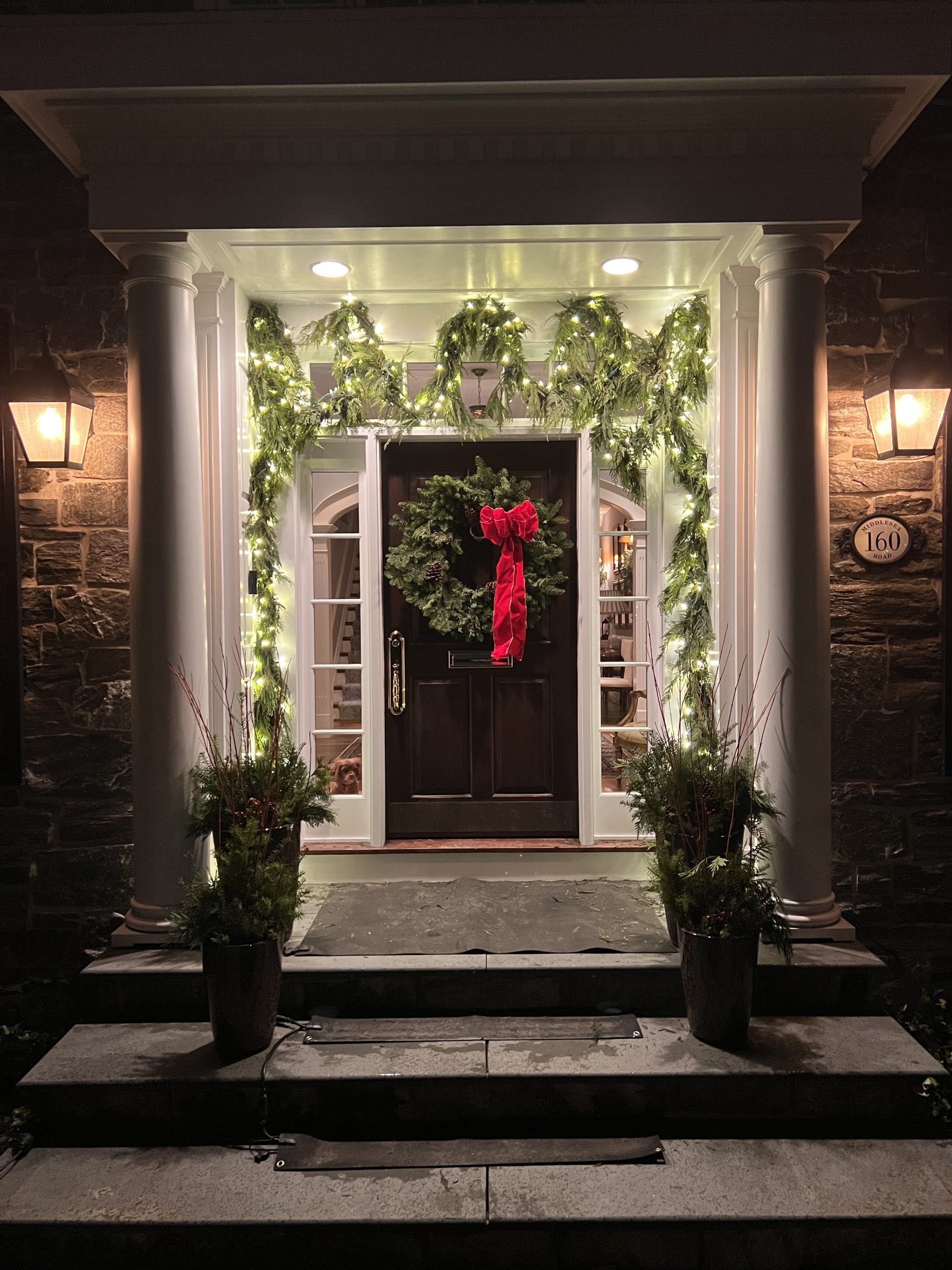 There’s nothing like offering to open your home in the first week of December to get the holiday decoration ball rolling. I hung the garland the day before our intimate meeting, but have yet to light the outdoor pots. I try and do a little every day. Slow and steady. And careful on the ladder!