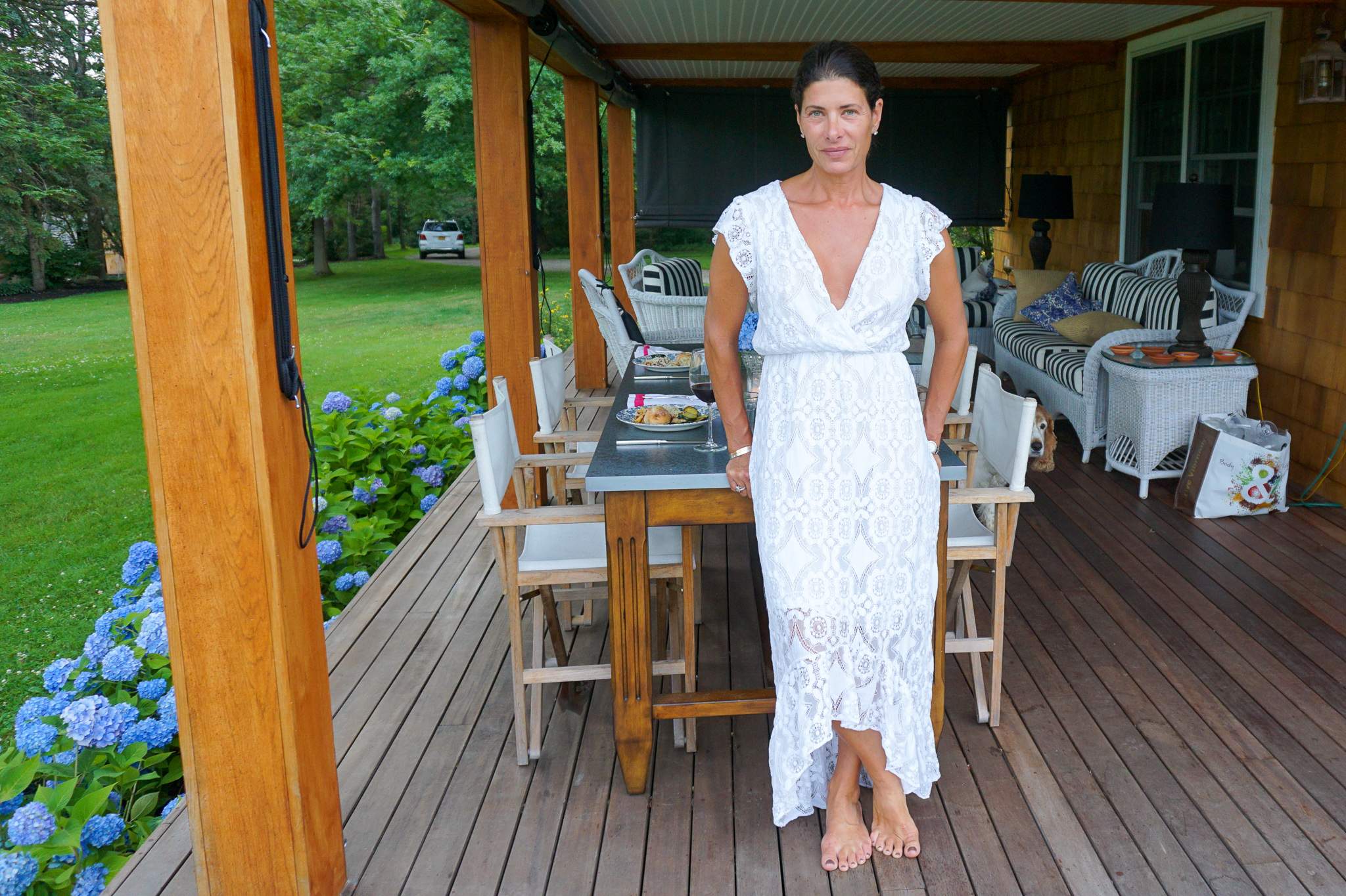 simple silk L’Agence dress (I’ve been known to wear it all day and then sleep in it at night, whatever) over bikini for dinner