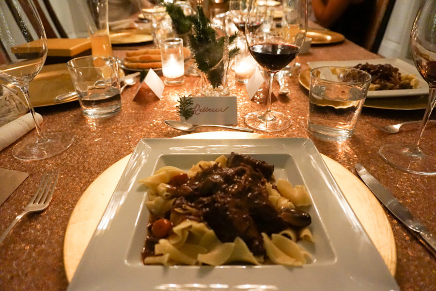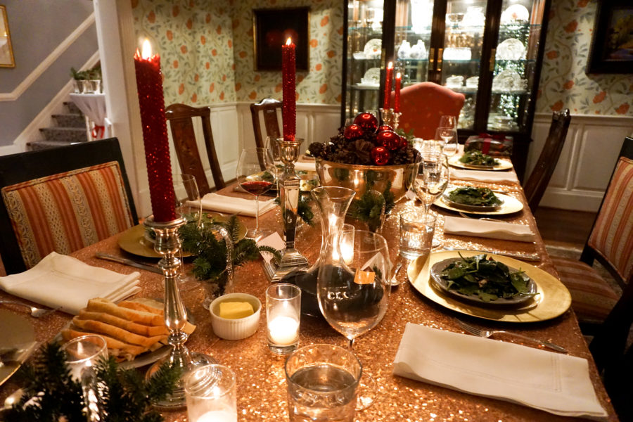 My friend and I always feel most comfortable behind the scenes at a party, you can usually always find us in the kitchen. This go round we thoroughly enjoyed the process of creating a special meal for neighborhood friends to celebrate the holiday season. It was a labor of good will and love, and we had an unbelievably good time working and learning together, those raviolis were not the easiest.