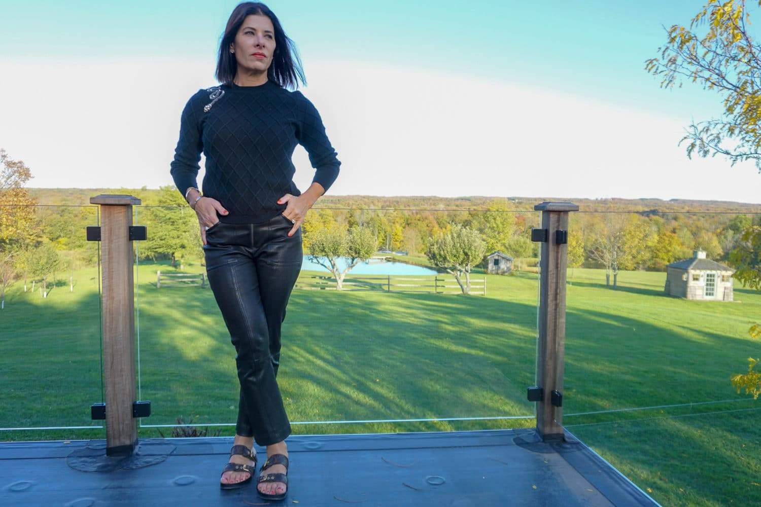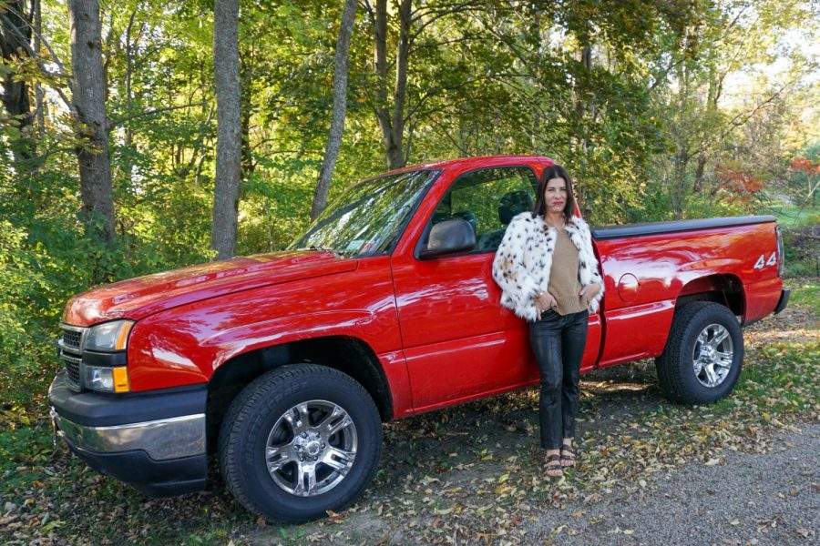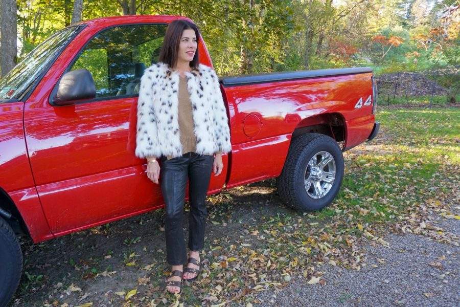 Took these photos out at the country place while on weekend from working trunk show. The little faux fur is not mine, I borrowed and returned it from the sample set for the afternoon, simply wanted to show it off. It’s a fun piece. Never mind I’m wearing sandals, forgot my very fashionable boots in the back and forth shuffle, that’s how it goes.