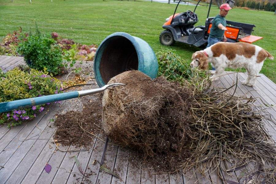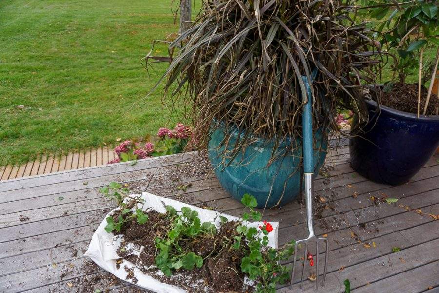 This past weekend while out in the country I wrestled with the annuals, I’m actually overwintering all of our geraniums, and I think I’m getting better at it, and it’s actually very satisfying. Those overwintered geraniums come back even better the next season out.
