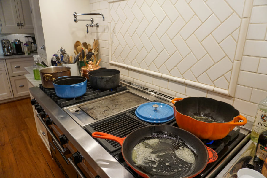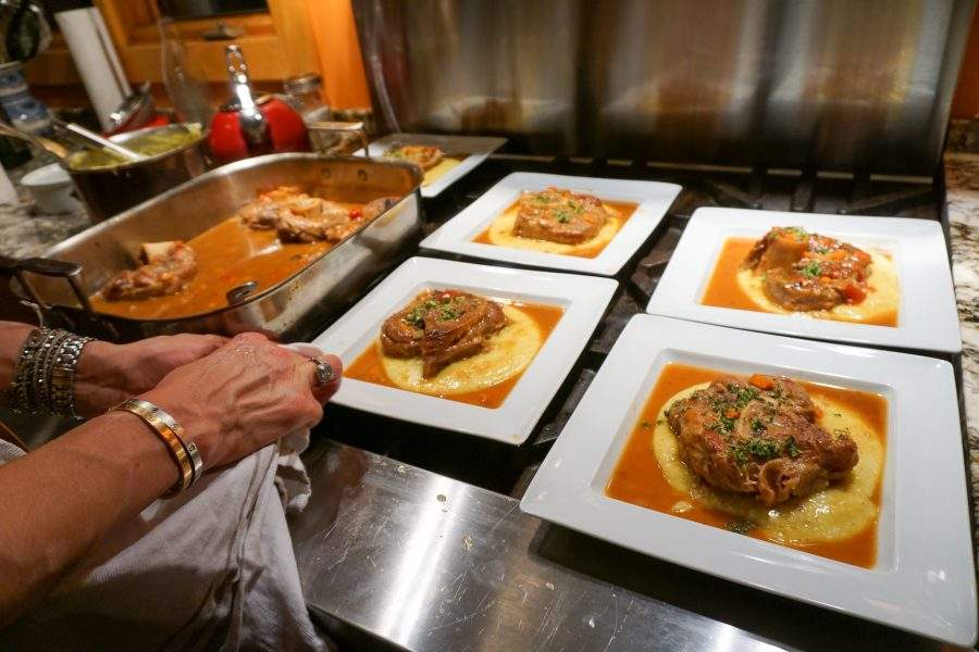 Home cooked meals you have complete control unless you have house wide gas leaks, which we did, and Niagara Mohawk shut it all down a half an hour before guests were due to arrive. A fast-hot shower, several phone calls to connected friends, a super nice company guy and a hero plumber and we were good to go. It did take several hours, and I did need to start reheating the osso Bucco on the outdoor grill, but we had faith, and we had dinner, even if it did end up being served an hour and a half late. With wine and an awesome cheese board, thank you Liz, we could all hang on.