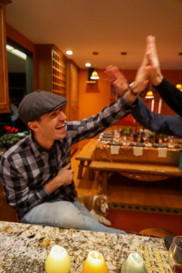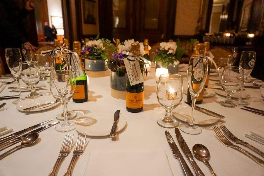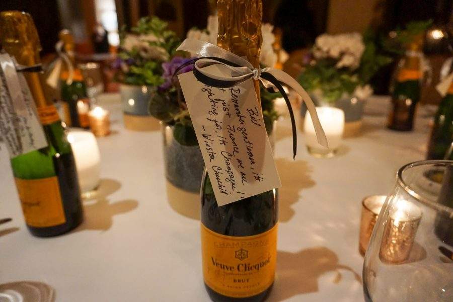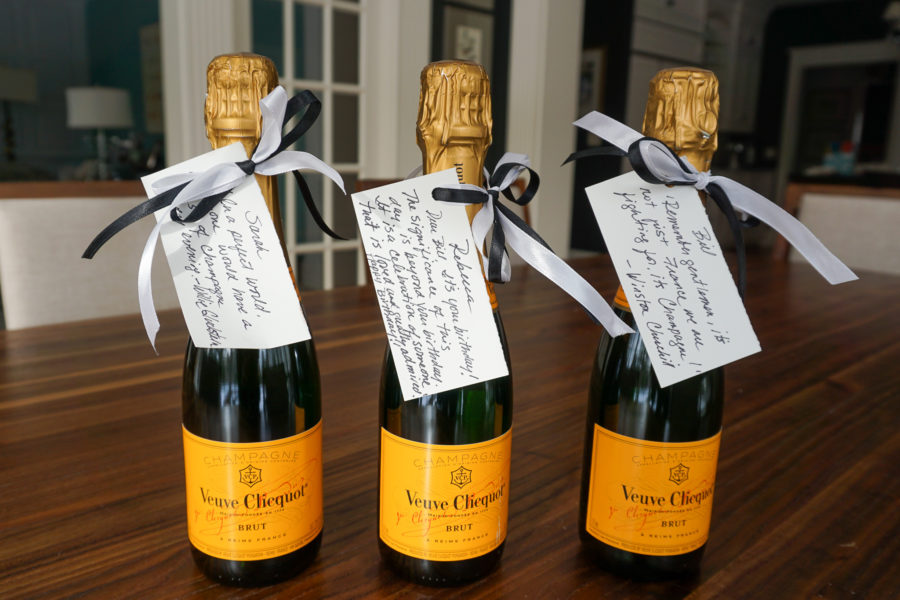 The real pop was the half-bottles of Veuve Clicquot that served as place cards at each seat. When there are more than four people at a gathering, I think being told where to sit makes the sit-down easier and more seamless. I googled ‘quotes about champagne’ and found a fun little Town & Country piece, copied each different quote onto a small card for each guest, and attached them with two lengths of ribbon. As an icebreaker and conversation starter (not that we really needed that, it simply added some novelty) we each read our quote as we moved around the table. My kids were delighted to take home champagne and cookies.