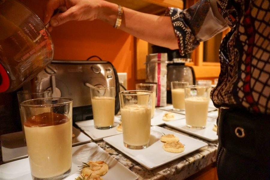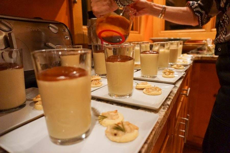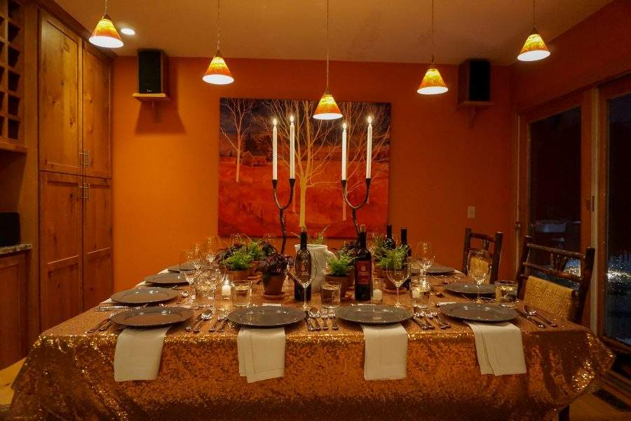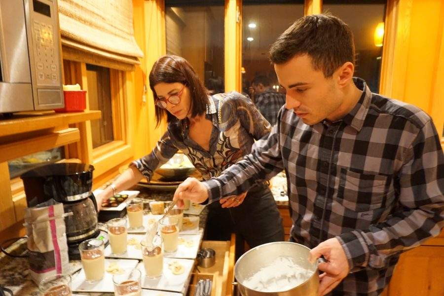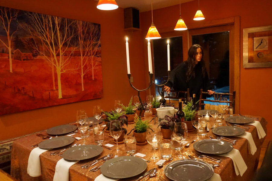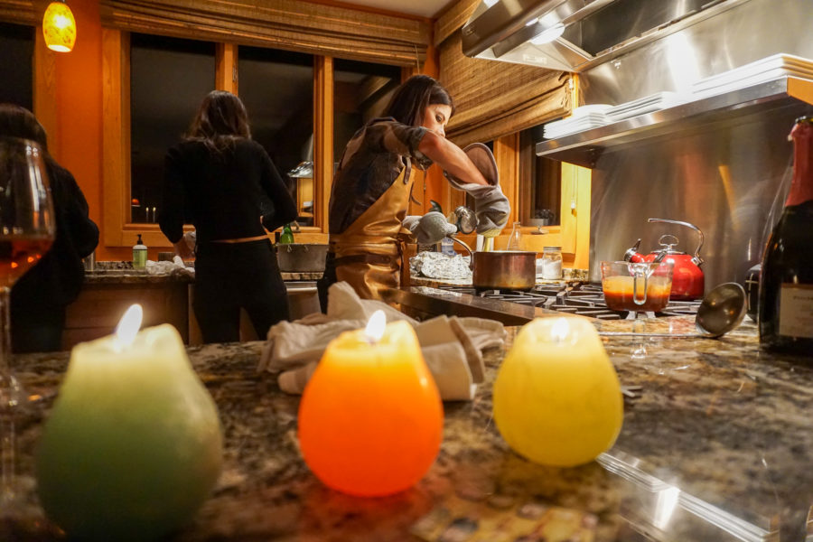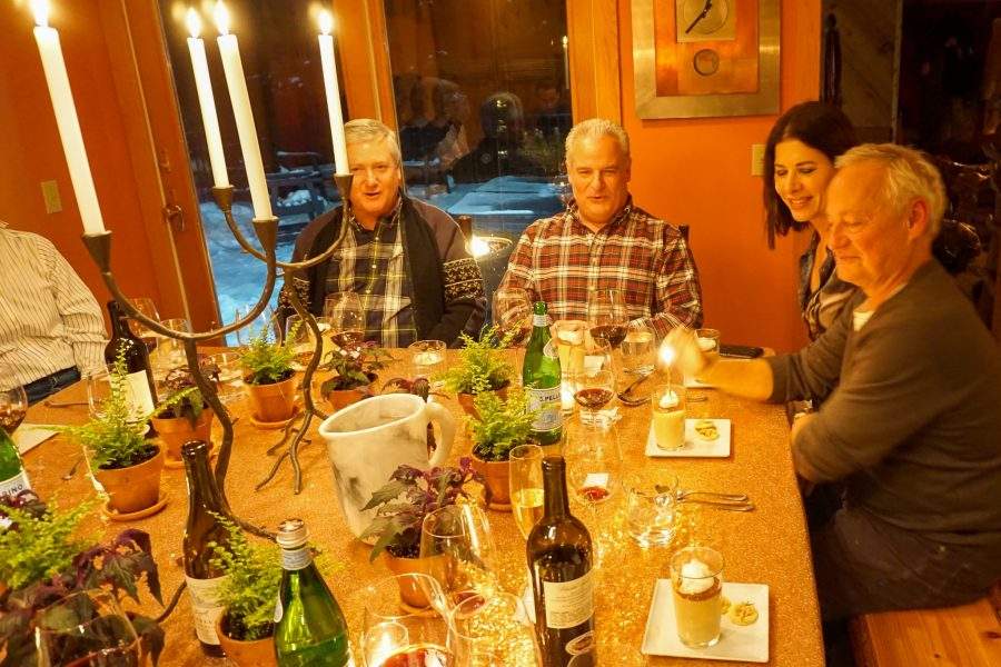 For the ski house dinner, I prepped pretty much the entire meal city-side and then very carefully transported all by car. For the club dinner I called the day before for a reservation and then ran all over town securing props to make it special.