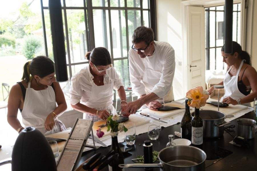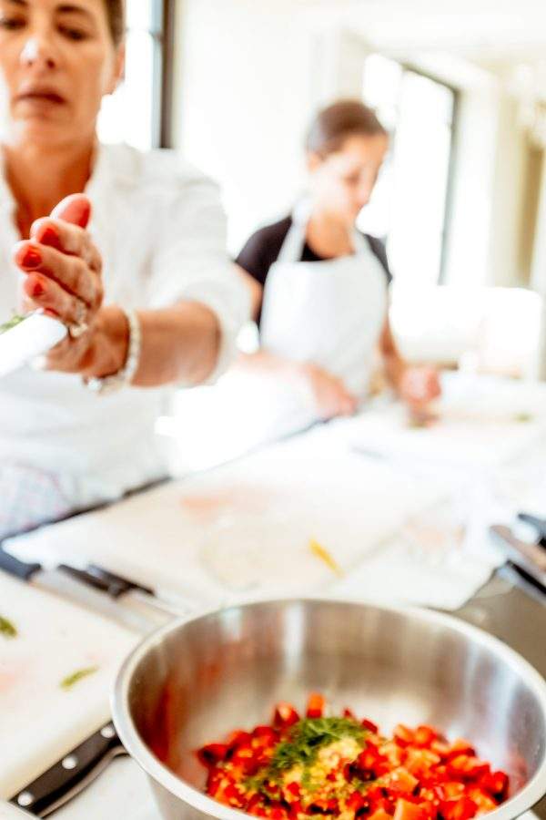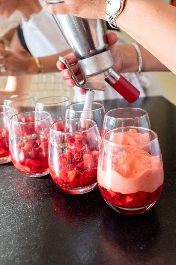 For one perfect afternoon while in France I cooked alongside four of my favorite females under the direction of Chef Gerald. It was extraordinary. We assembled a two-course meal that included boning and filleting fish, making stock out of the bones, honing our knife skills while making an exquisite ratatouille, turning fresh basil into an incredible puree, and using liquid nitrogen to produce our fresh strawberry dessert.