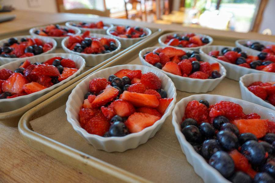 individual fruits before the crumble topping