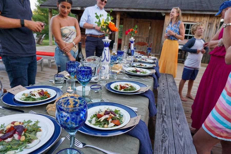 here’s the dinner where I served the above salads, brown paper place cards, helps everyone to know where to sit