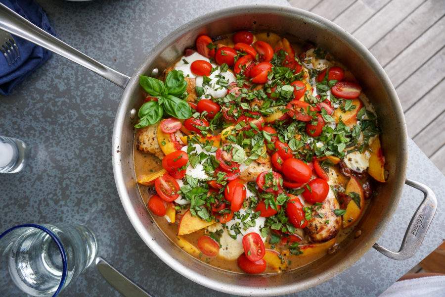 one skillet chicken with peaches and mozzarella