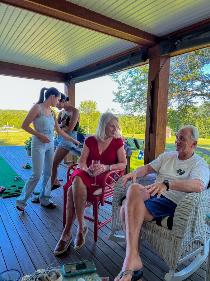 Chilling on the covered porch. I love Monnie’s red dress!
