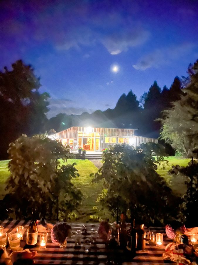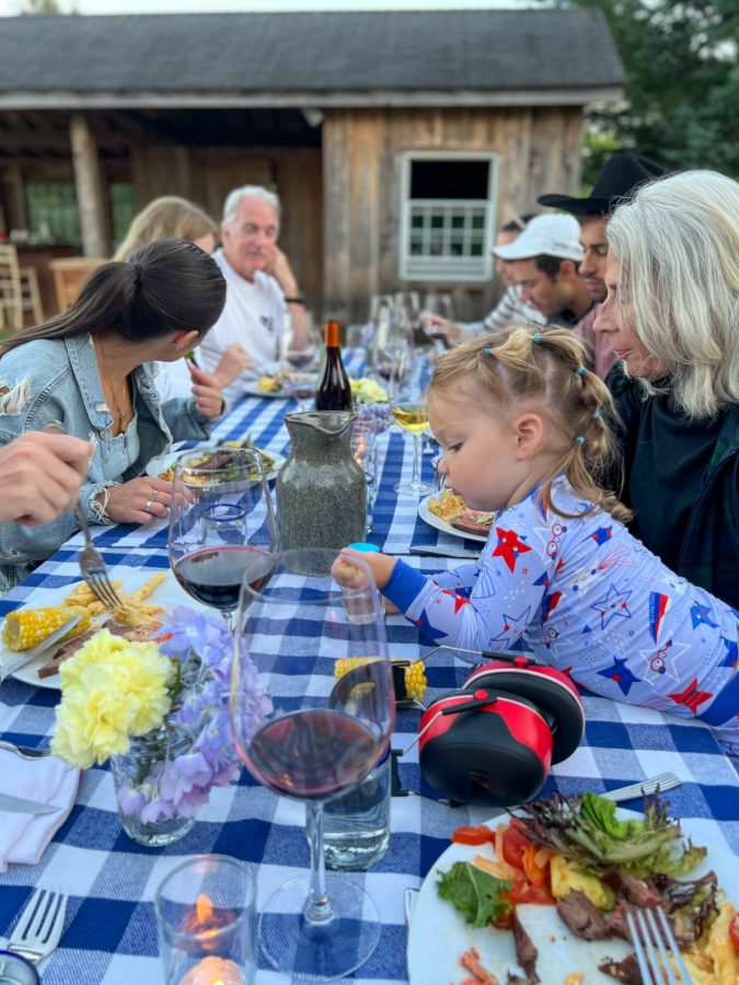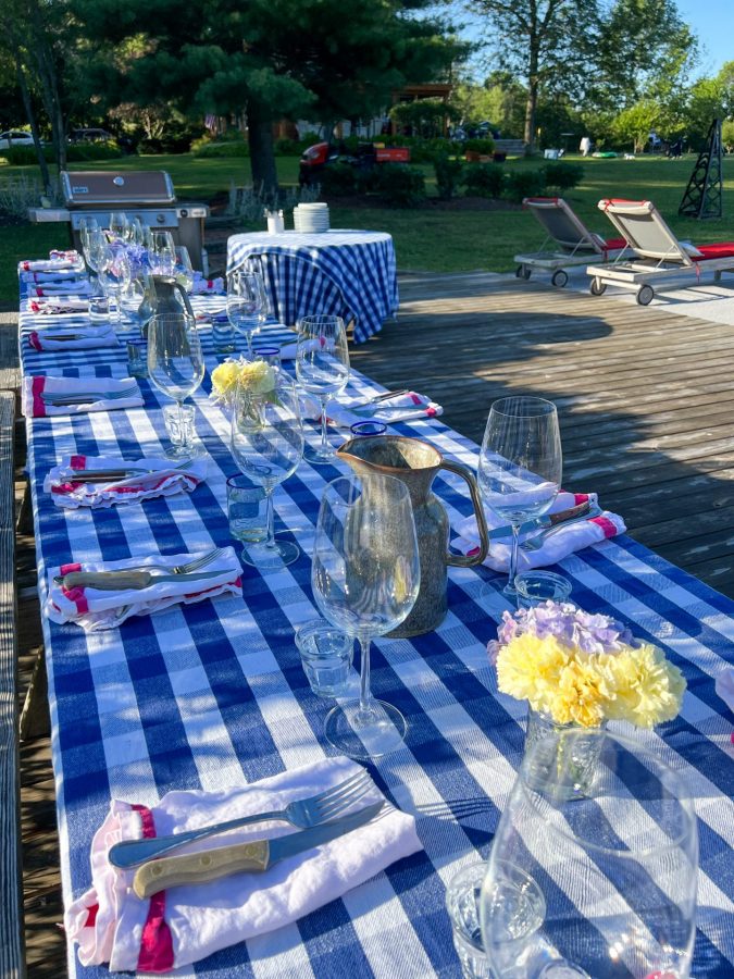 Accessible table settings included flowers from Rory’s party and the garden, tablecloths from last season, whitelinen napkins, unironed!