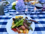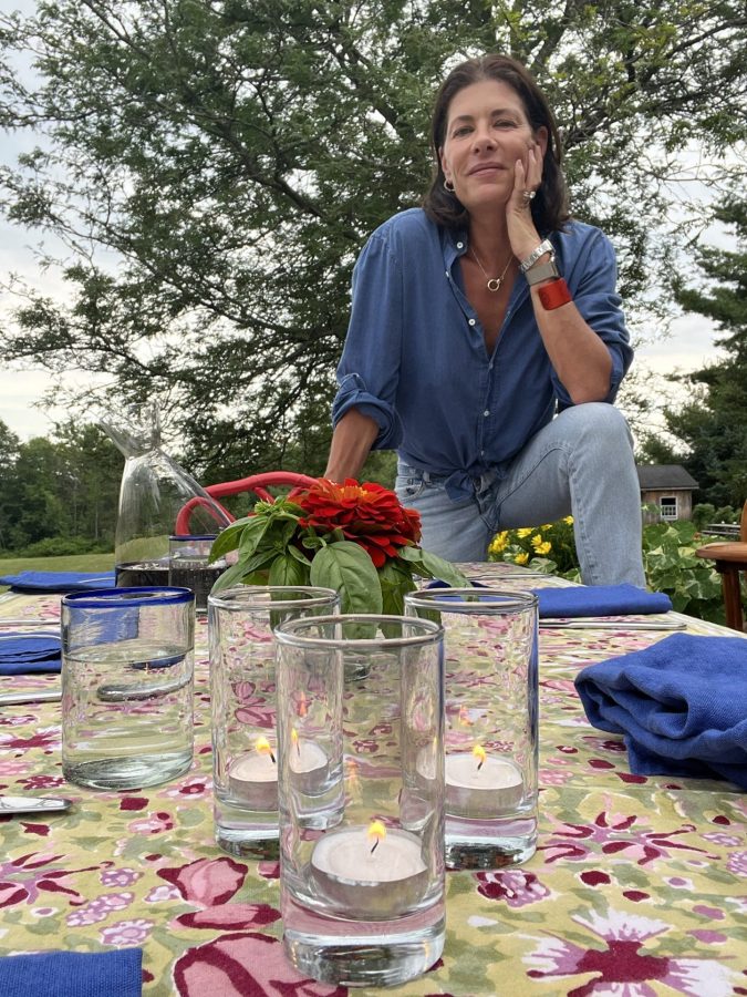 We had dinner every night as a group, and here I’m all in for denim on denim. The denim shirt is actually Cucinelli and from my husband’s closet, he doesn’t wear it as it’s oversized on him, I was happy to adapt. The jeans are Moussy and two or three years old. The zinnia and basil were cut fresh from my garden.