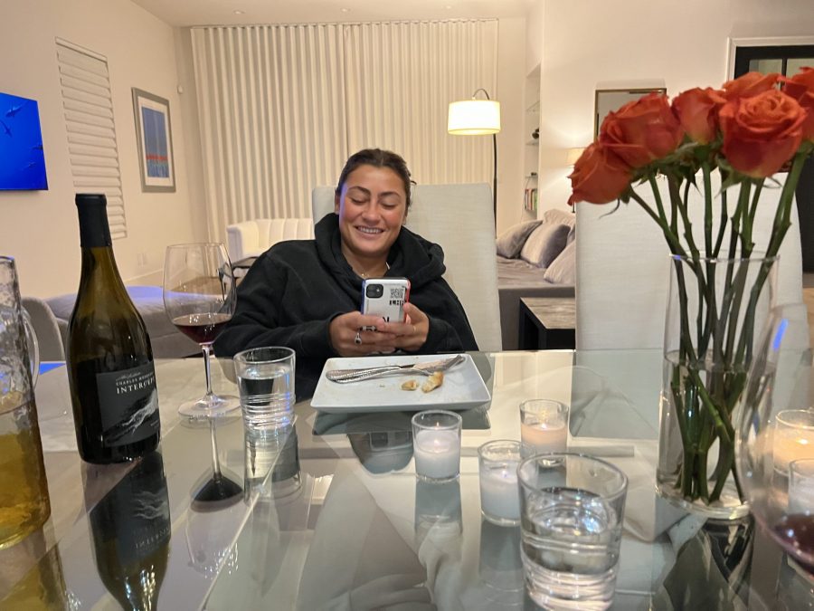 Elizabeth picked me up at the airport at 9 pm and had pizza, salad, and wine waiting for us at the house.