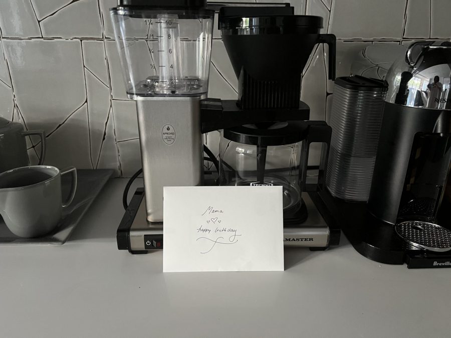 The next morning she had a sweet birthday card waiting for me at our coffee station.