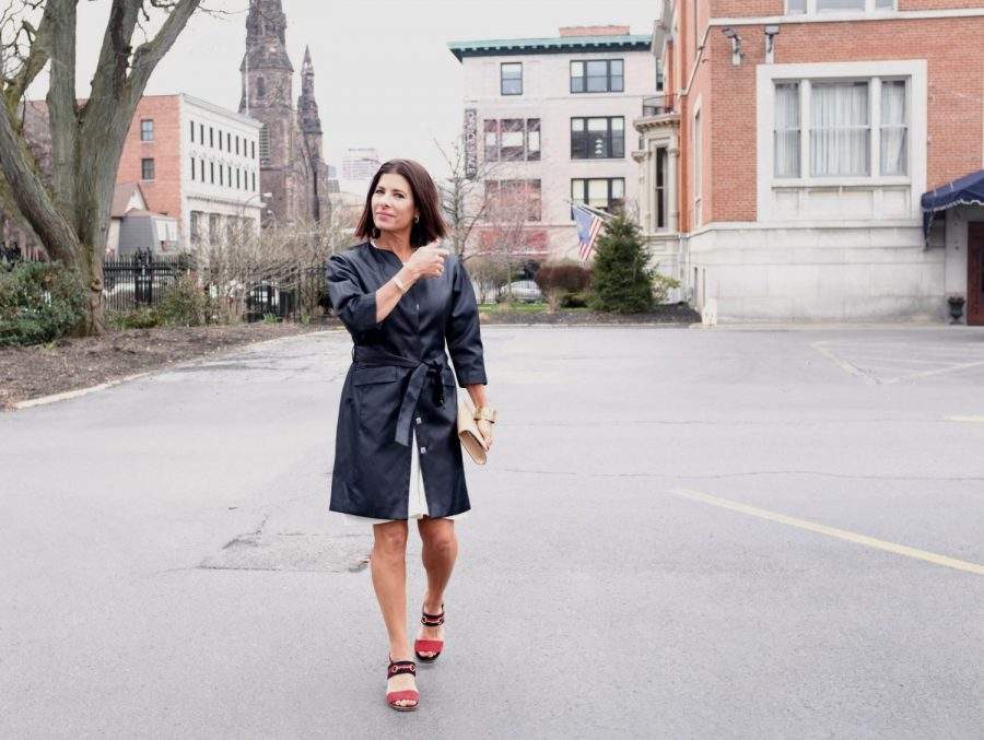 As for the wardrobe, some things are perennials, like a good dress and coat. These photos were taken a few weeks ago by the husband, we had a fancy wine tasting dinner to go to. Both pieces are closet classics and have been around for a while. The white knit dress, Missoni, was a Christmas gift from him four years ago, bought in San Francisco CA. The navy coat, one of my favorite pieces from my time with Worth New York, comes in and out of the rotation and always feels timeless, classic, and fresh when brought out again.