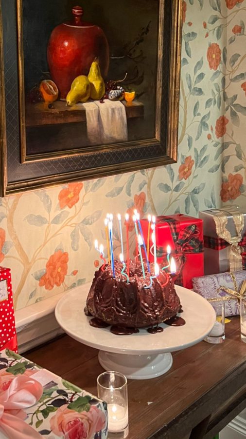 chocolate-mayonnaise cake with bittersweet glaze and gifts