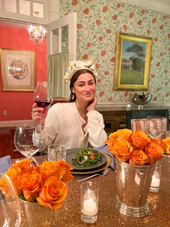 she still wears her paper crown every year that I bought for her when she was turning sixteen. I keep it in a special drawer in the dining room. I bought the orange roses at the grocery early that morning. Orange is one of her colors.