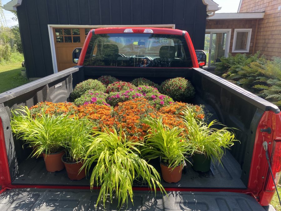Bill brought home fifteen mums and some grasses for me to plant. I pulled out all of the red geraniums, the purple petunias, and the pink and white cosmos. Every fall I get that feeling with the garden combinations, I also get the same feeling with most things in the summer closet.