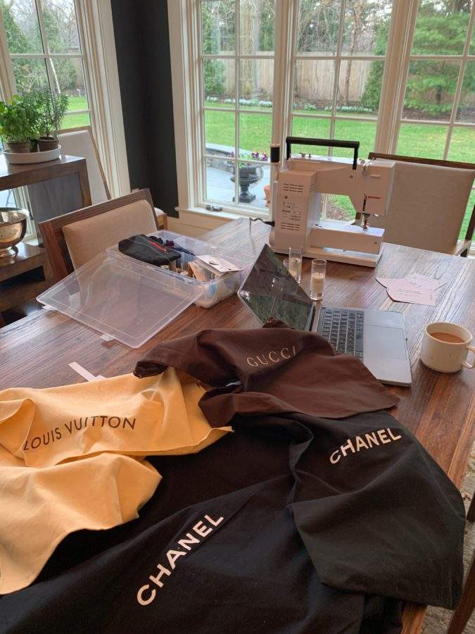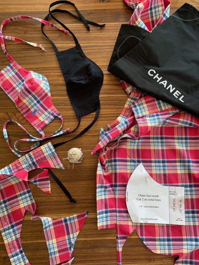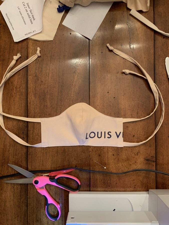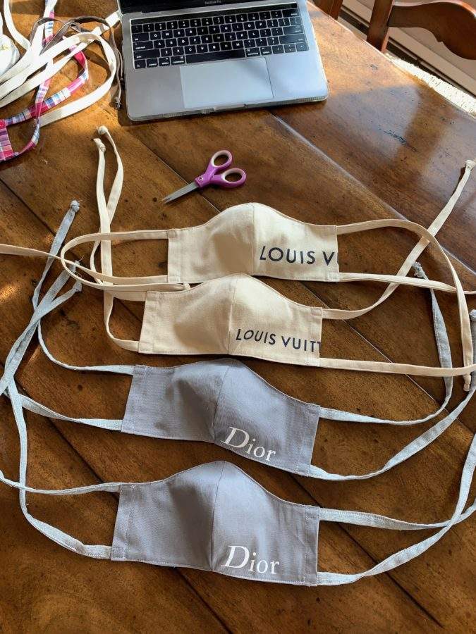 So, I’m now sewing, instead of landscaping, to fill hours upon hours. My masks are a little over the top, like me at times, that’s just how it is. I’m filling orders for friends and family, Danny and Savoy up first, Michelle and her family next, a couple with young kids in the burbs, my 80-year-old mom of course, one of Sarah’s friends out in Colorado that never leaves the house without one (hello Karson! Necessary worker- marijuana!), and a client friend and her husband down in Hilton Head Island. After that they will go to more family and friend requests, Sarah shared a little on social media.