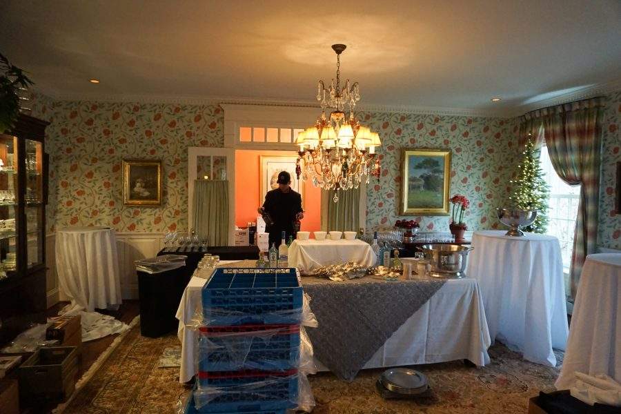 - Drink: okay, so for this gig husband decided on 3 hours of top-shelf bar per guest instead of our usual, us providing the wine, and bar based on consumption. Who’s to know which is more economical? In the end probably a wash…I set the bar in the dining room and used the dining room table as small as I could make it with a back bar behind and overflow in the butler’s pantry.