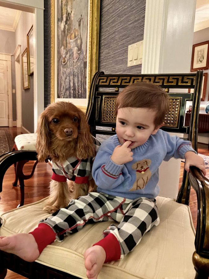 Mazi and Rory. Rory arrived dressed and needed a quick outfit change (a pivot!). We had him unwrap his new dog sweater and pj’s early in the afternoon. So cozy.
