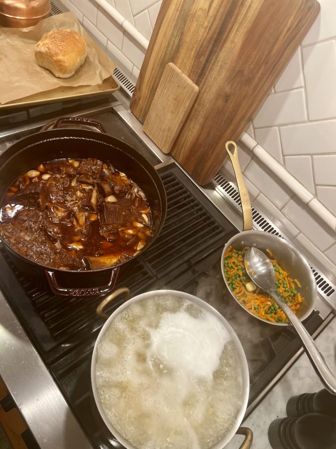 I bought myself a thirteen-quart Staub Dutch oven early in the season, and I adore it. I used to make family meals in two or three large Dutch ovens, and now one large one streamlines the process.