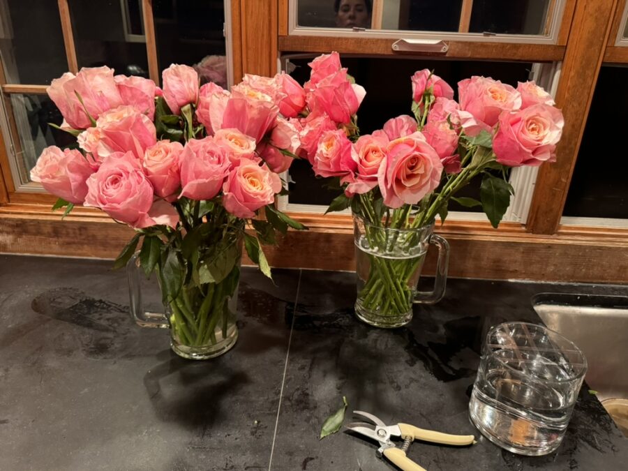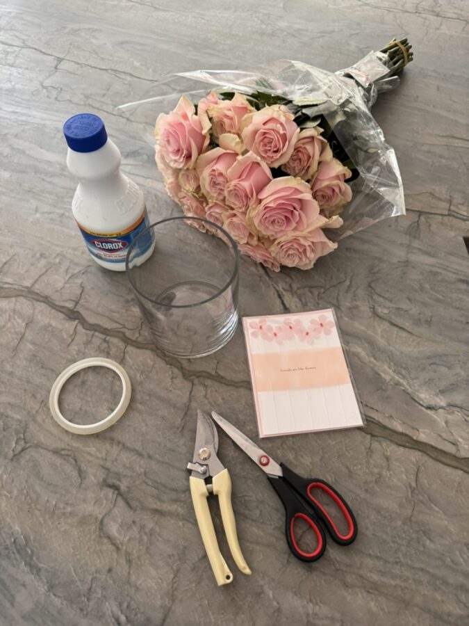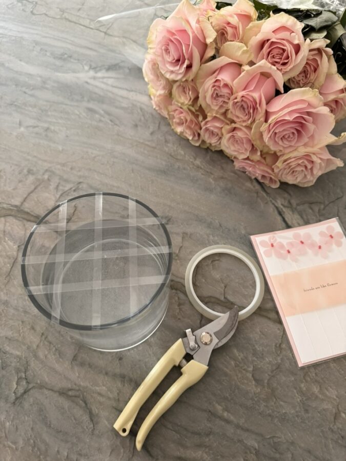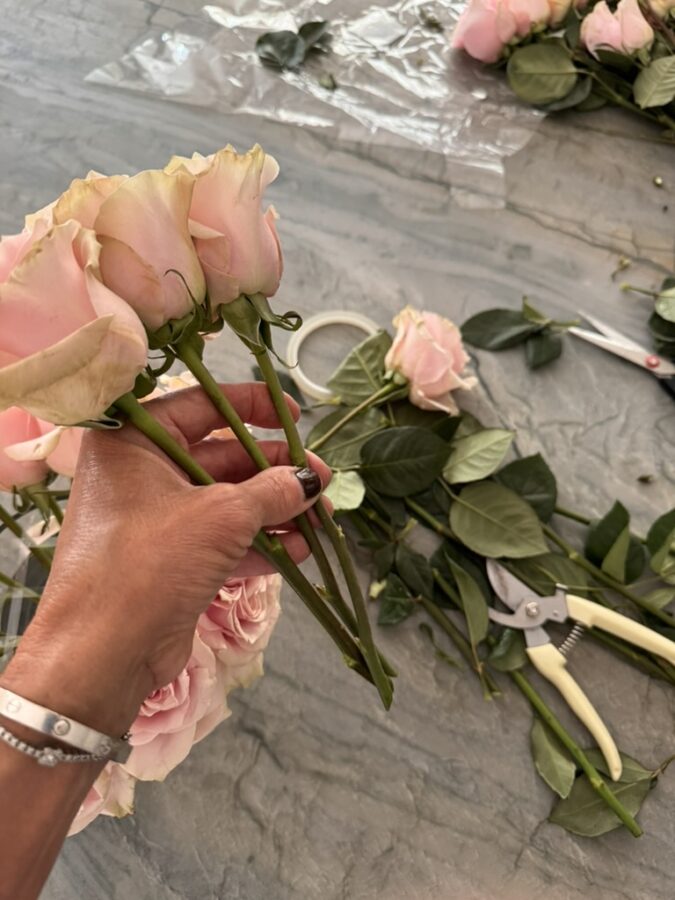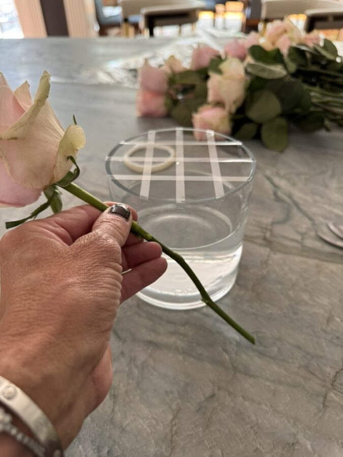 Learning a new party trick is fun. Recently, I’ve been making these dome-shaped single-stem floral arrangements for events, dinners, and small birthday gifts. I watched Maurice Harris on MasterClass for inspiration and haven’t looked back. You can make these easy arrangements with a bunch of roses from the market or the florist, floral tape, and round vases from Amazon.