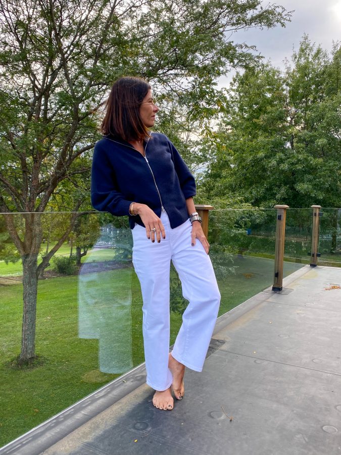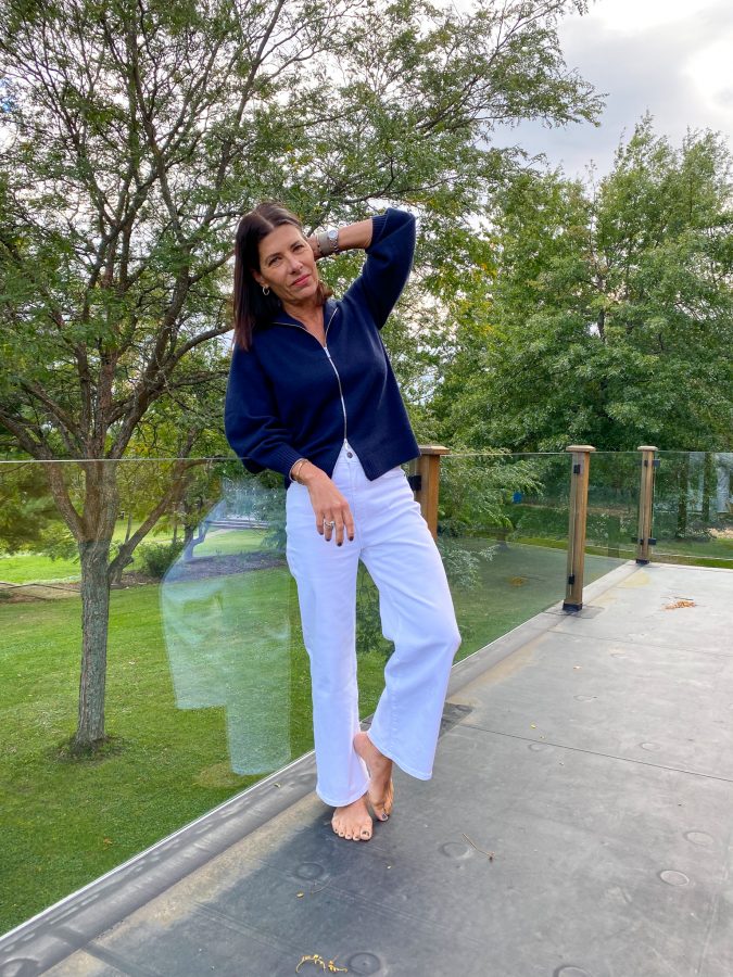 I recently added to my denim collection, and the new pair is white. I know some say white denim after Labor Day is a no-go; I, on the other hand, am all for white denim all year long.