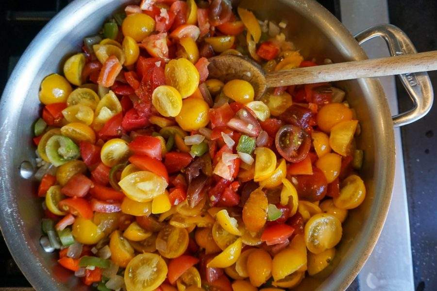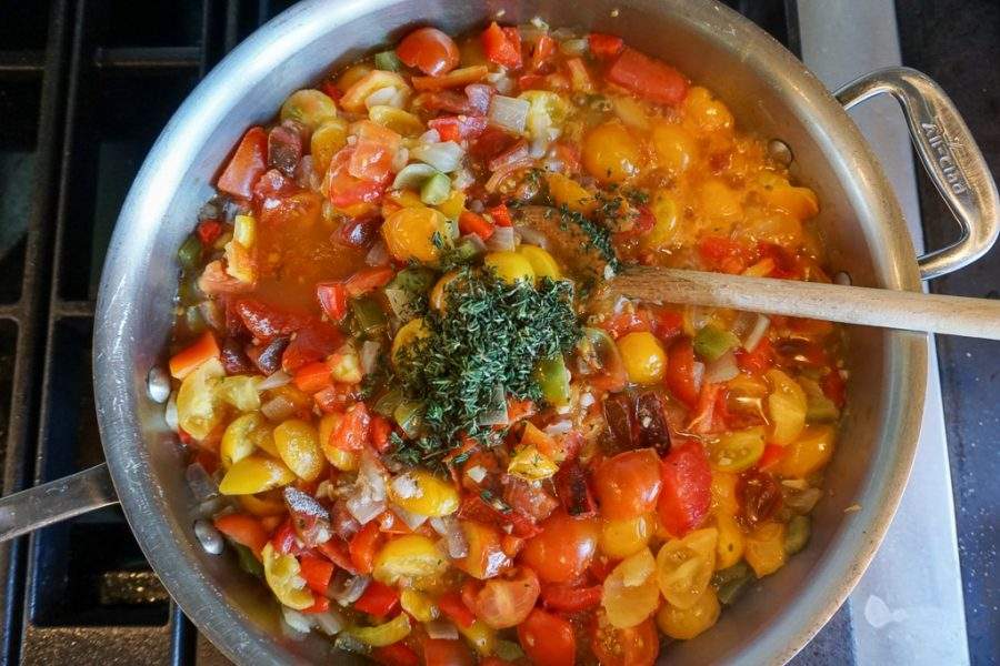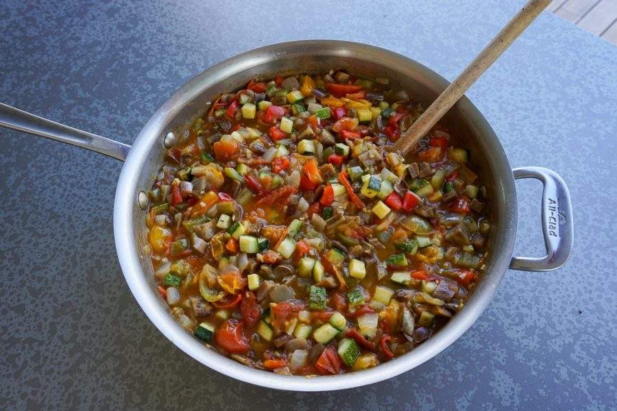 Today we’re at the country house, and yesterday I made delicious dill potato salad and classic French ratatouille. Yesterday I made scratch blueberry pancakes and the day before that a blueberry pie, triple batch of Bolognese, scratch Caesar dressing, garlic croutons and chocolate chip cookies. You could say I like to feed those around me.