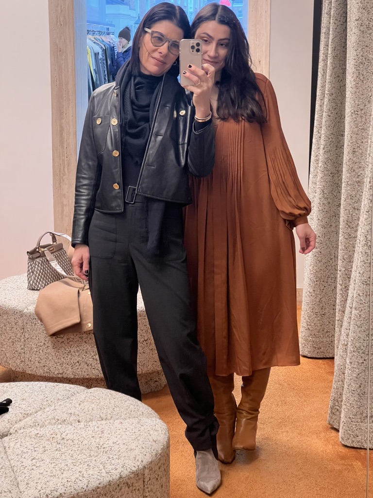 The following day, I met her for blowouts and then ran out to Wolford, our favorite for all bodywear, and picked up two pairs of nude tights, one for her and one for me.