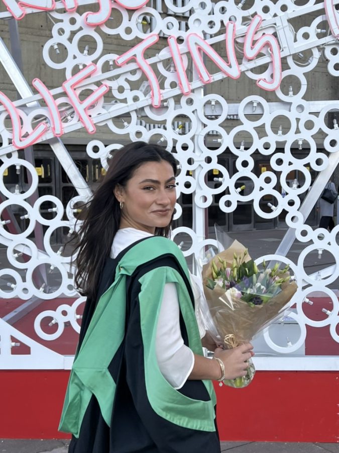 I also bought a bouquet of fresh flowers for her, and running out of time, I basically ran all the way back to the rental flat, messing up that morning blowout, yet who really cares about your own blowout when it’s your daughter graduating with a master’s degree, in London.
