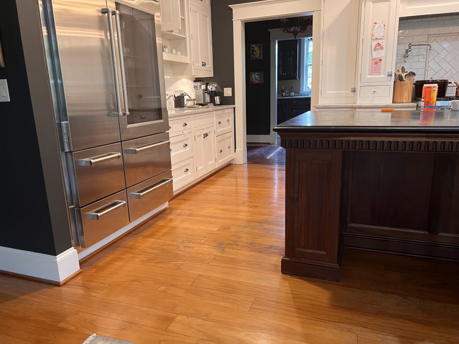 The floors were sanded. We initially thought we would only do the kitchen proper and the primary bath, and then realized that we were deeply in this, and why not the entire house, budget be damned. All of the floors were sanded and refinished, and they look sensational.