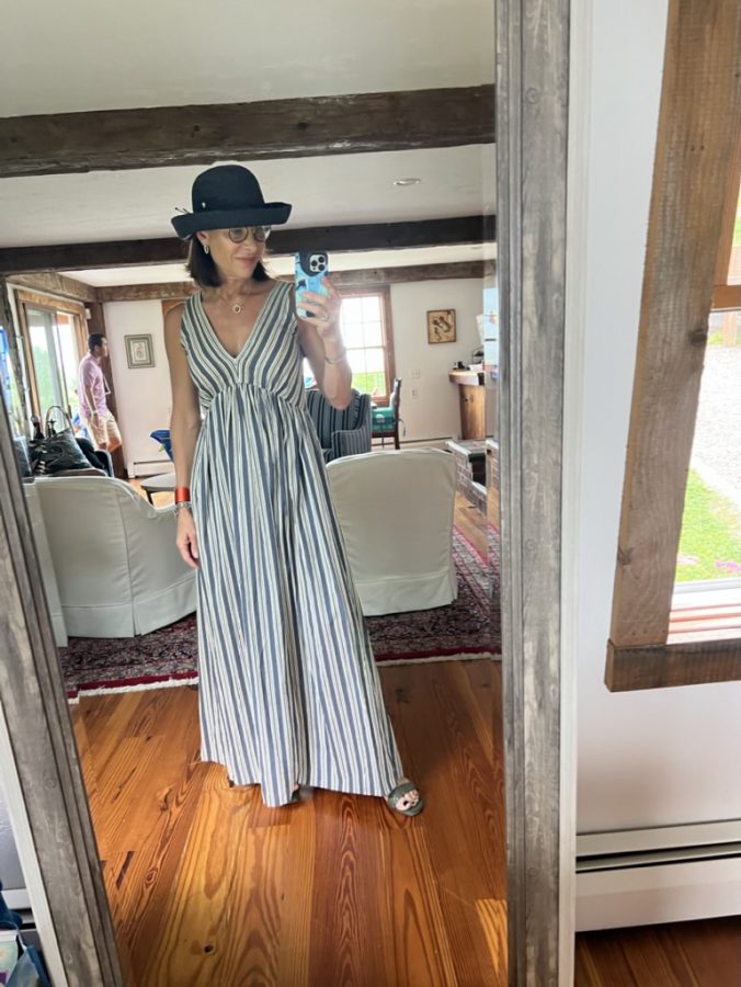 I wore a long cotton Cucinellidress I bought a few years ago with new Lafayette sandals