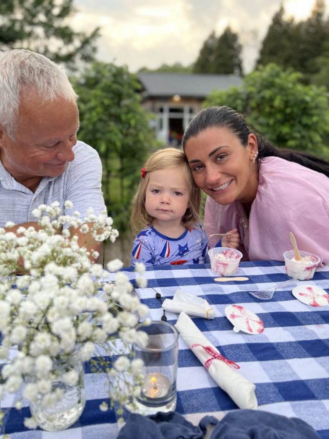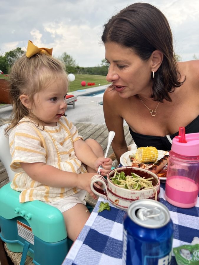 Peyton in her 4th of July pj’s with Aunt Booie enjoying old fashioned skippy cups for dessert. How good is that little wooden spoon?