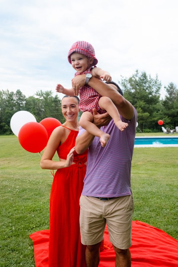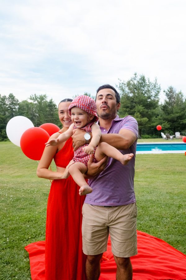 Lindsey, Ethan, and Rory. Lindsey chose ared and white theme and tied fun balloons around the property.