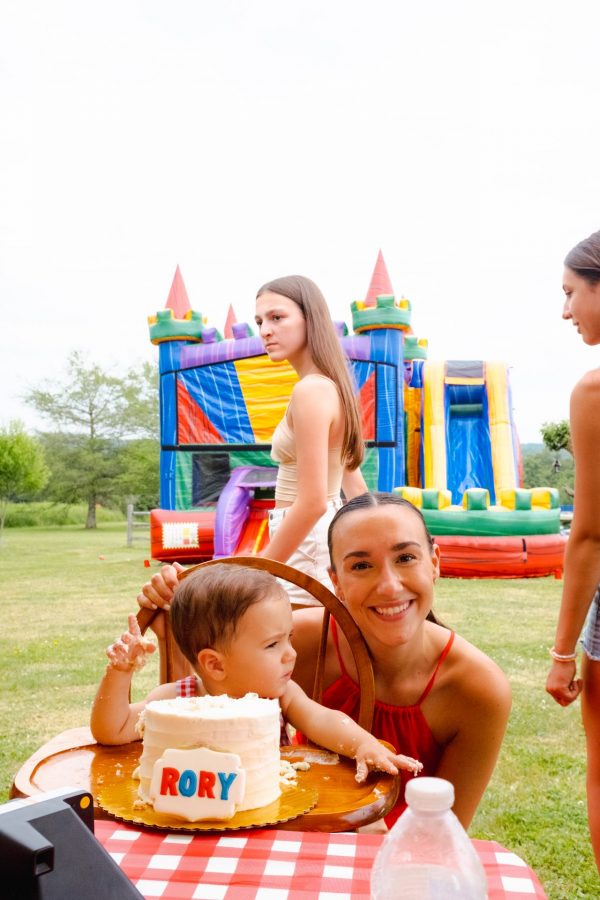 Beautiful mom Lindsey and Rory before the singing of Happy Birthday. My sister Tracy bought the wooden high chair in a consignment store in Ellicottville for $20. We love that it is getting such great use!