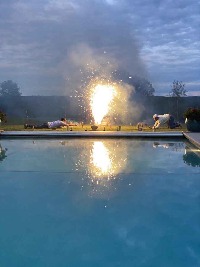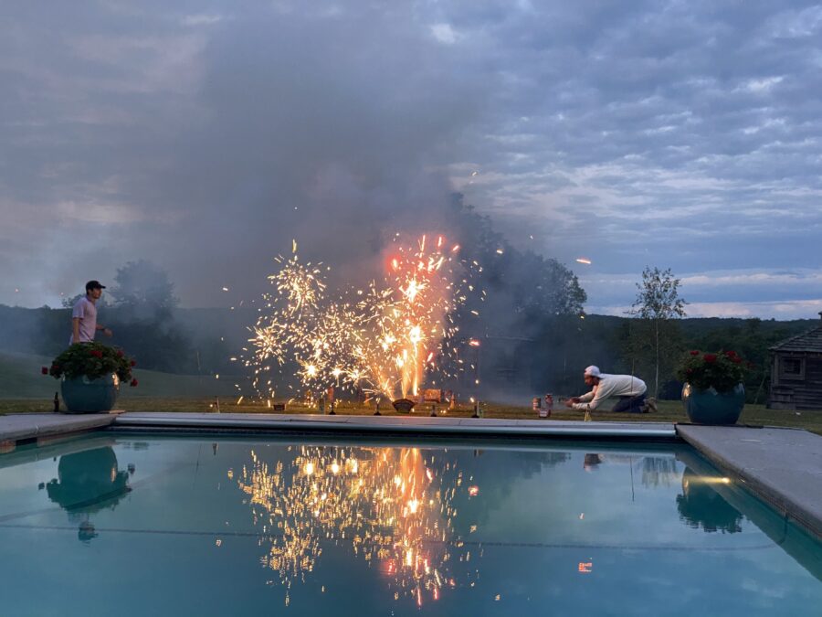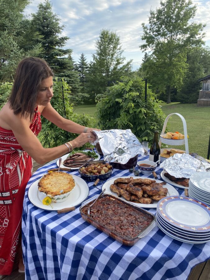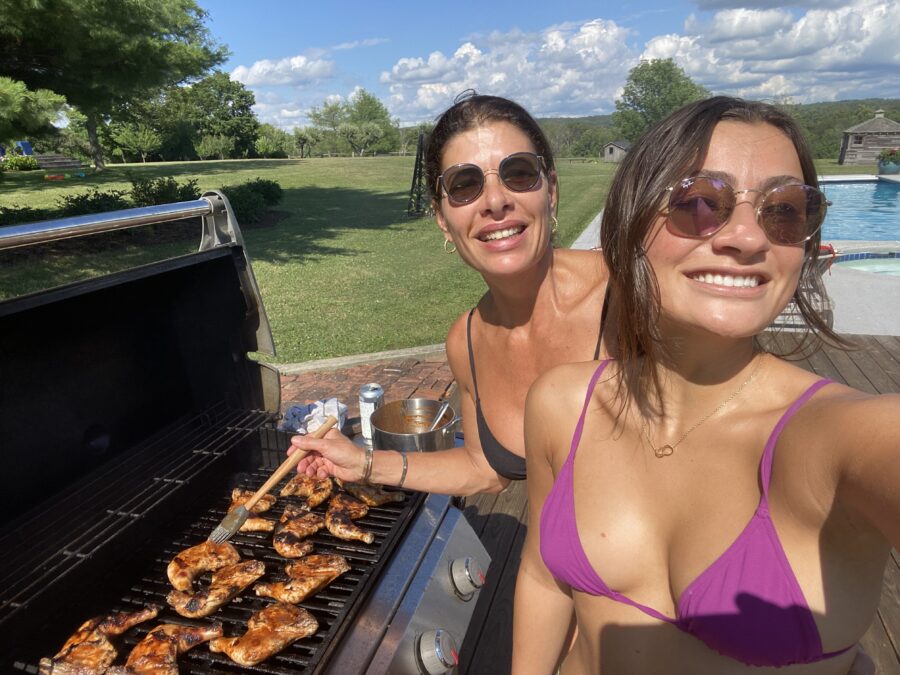 afternoon grilling, lots of chicken and three marinated flank steaks, while everyone cocktailed by the pool.