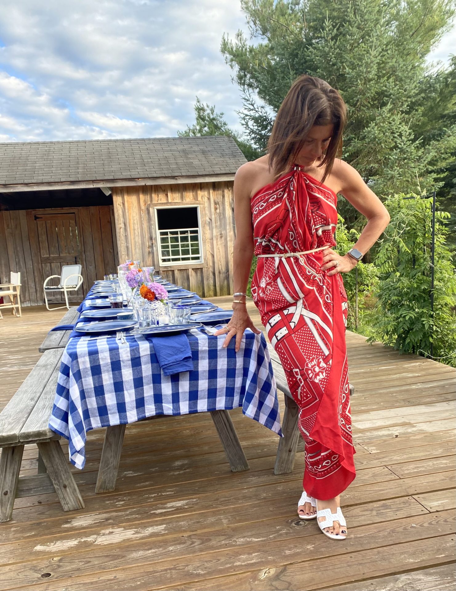For 4th of July weekend festivities we cooked and entertained for family and a few friends as family to the moon and back. Honestly I didn’t stop prepping for about a day and half straight and when it came time to sit at the table I needed to act quick, so scarf as dress to the rescue.