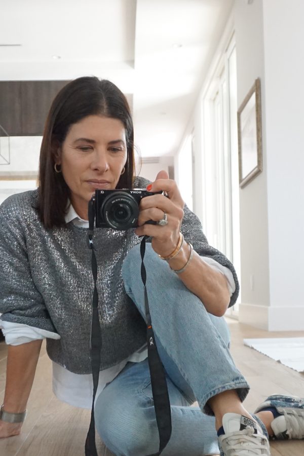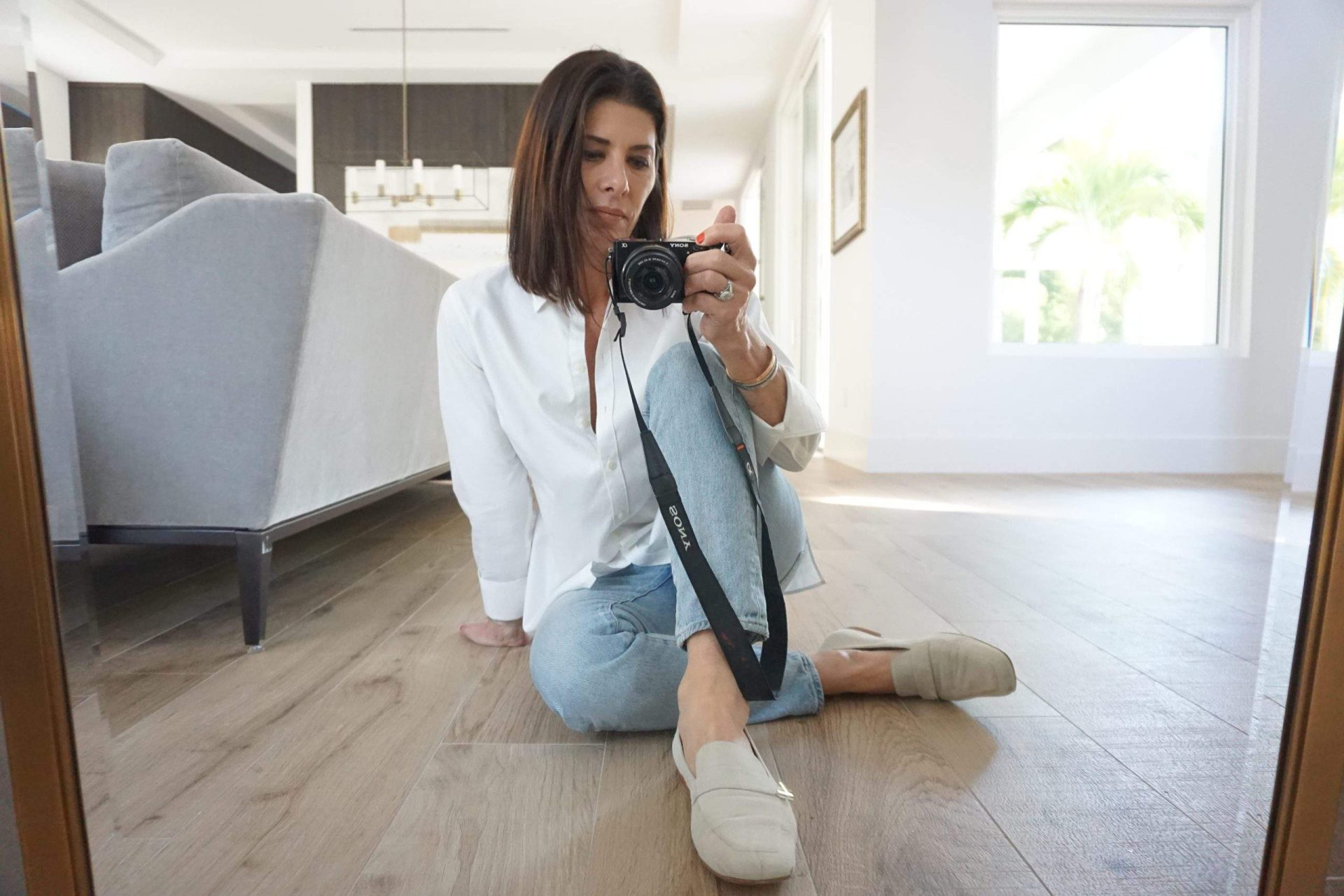 A white blouse stonewashed blue denim, and a good red polish in my world, a winning trifecta. Sneakers or suede loafers, bonus points.