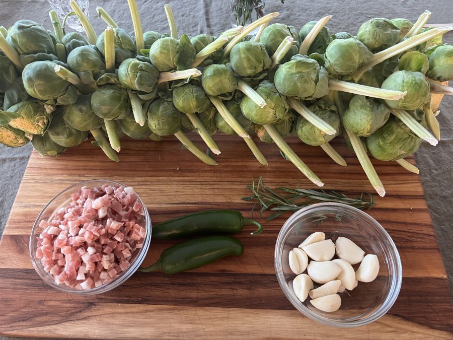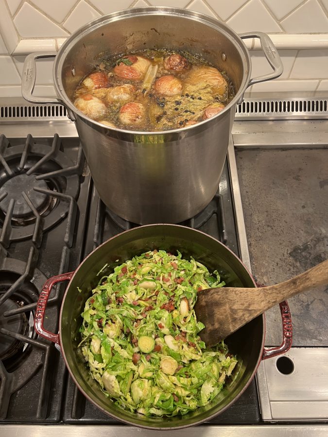 Stock that I simmered for hours and days and brussels sprouts for pasta