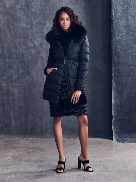 When she was home in BUF in early November she stopped in at our downtown studio and really liked our Black Goose Down Fur Collar Puffer Coat, she was in the market for a puffer, and one that covered the back pockets of her pants, as most women in NYC walk those streets in some version of the same.