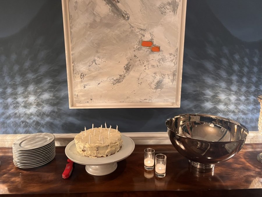 We’ve been a bit all over, and Bill had another time around the sun a few weeks ago. Peyton and I made him a box cake in Boston, MA, on a Sunday afternoon, a day after we flew home from London. Bill and I flew home to Buffalo, NY, on his actual birthday, Monday, and while on the flight, I asked him what he wanted for dinner and what kind of cake he might like, and he said he had to think about it yet just before we landed he told ‘steaks on the grill and carrot cake.’